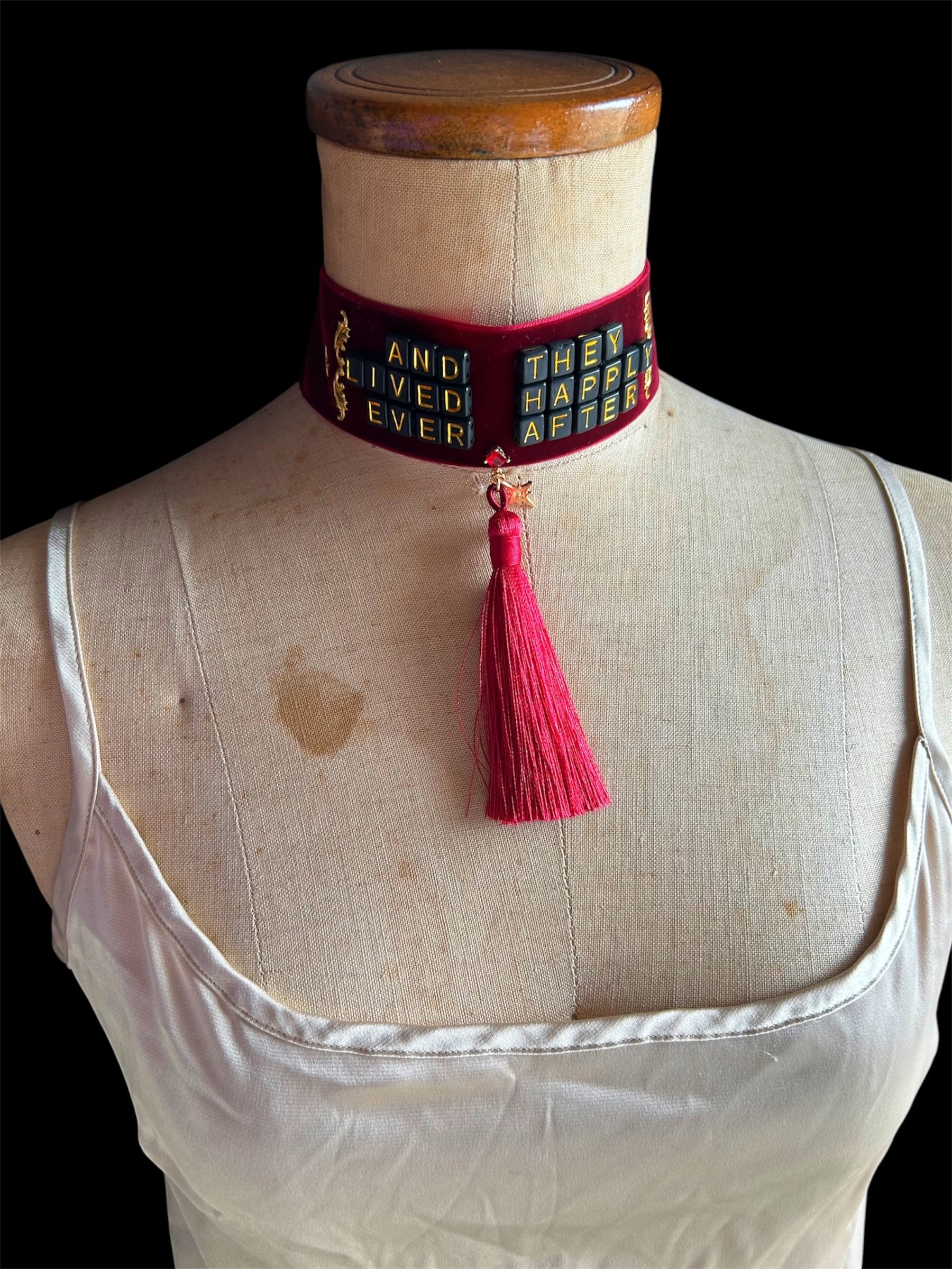 「そうして2人は」は、絵本のめでたしめでたしをリボンチョーカーという形にした、個性的でユニークなアイテムです。身につけることで、物語のような特別な気持ちを感じられることでしょう。このチョーカーは、シンプルなスタイルにぴったりのアクセントを加え、あなたの個性を引き立ててくれます