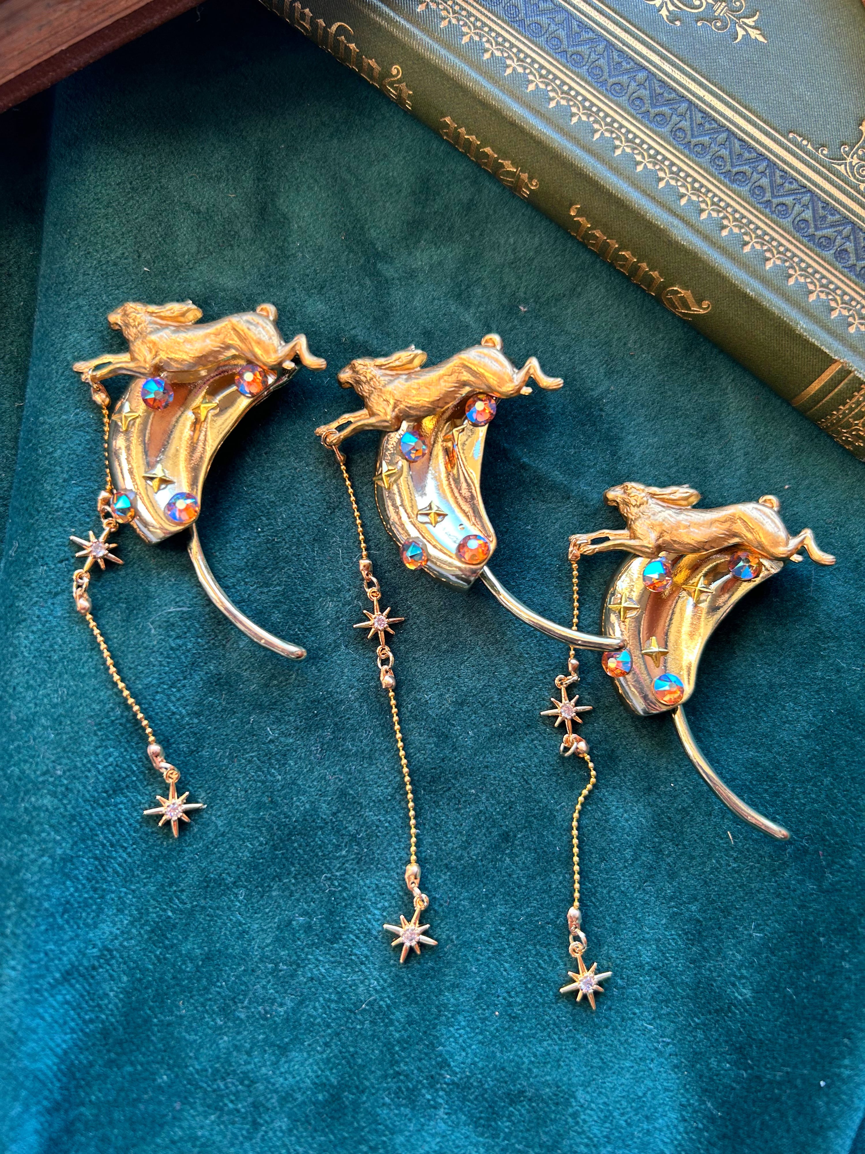 「跳ねる心」は、うさぎが跳ねる様子をモチーフにした、美しく個性的なイヤーカフです。耳の上から被せるスタイルで、さりげなく存在感を放ちます。このイヤーカフを身につけることで、あなたの魅力が一層引き立ちます。