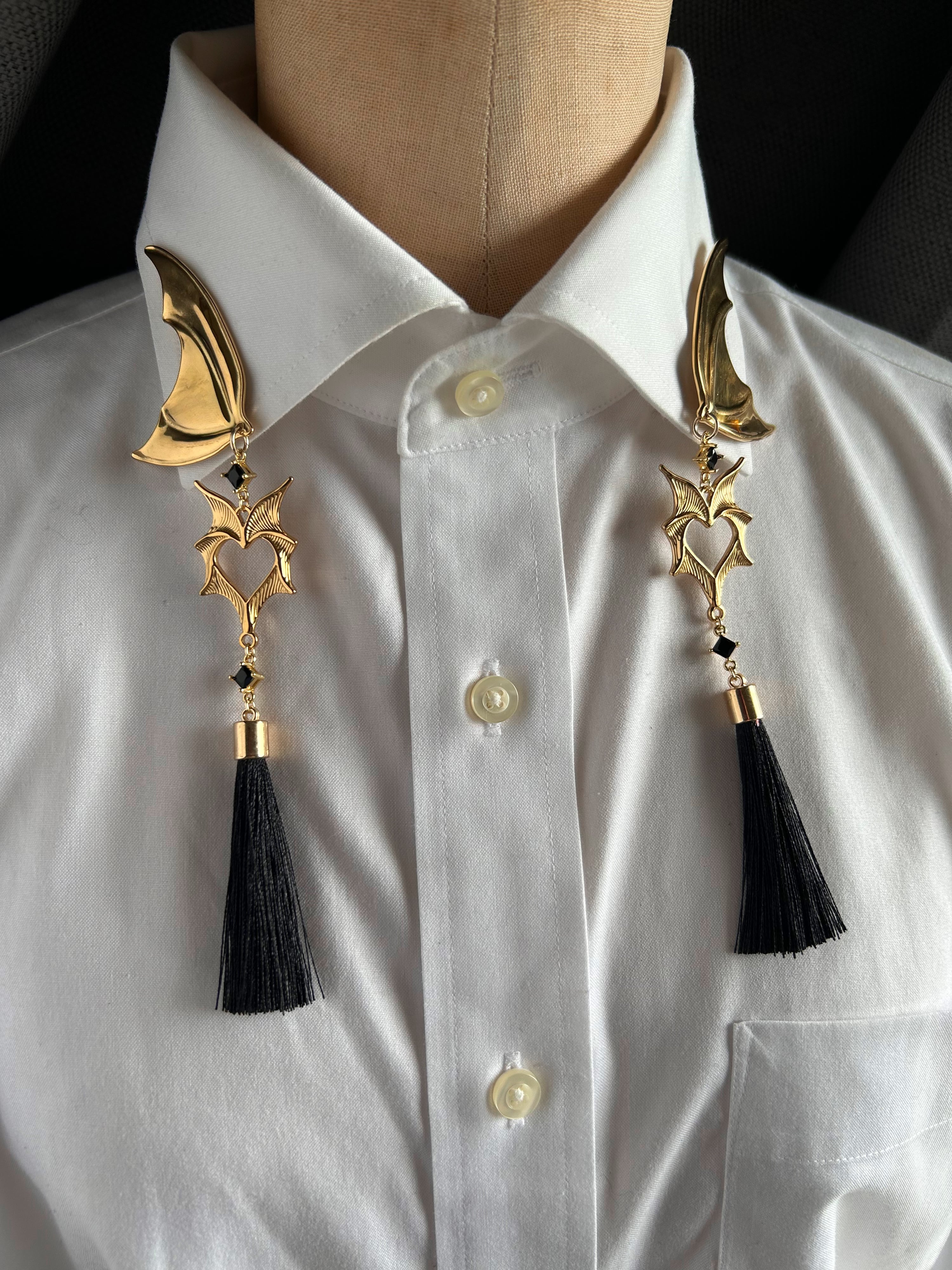 「蠱惑」は、ヴァンパイアやサキュバス、インキュバスをイメージした神秘的な襟飾りで、魅惑的な雰囲気を演出します。独自のデザインが際立ち、身につけることであなたのスタイルに妖艶さと個性的な魅力をプラスし、注目を集める存在感を演出します。